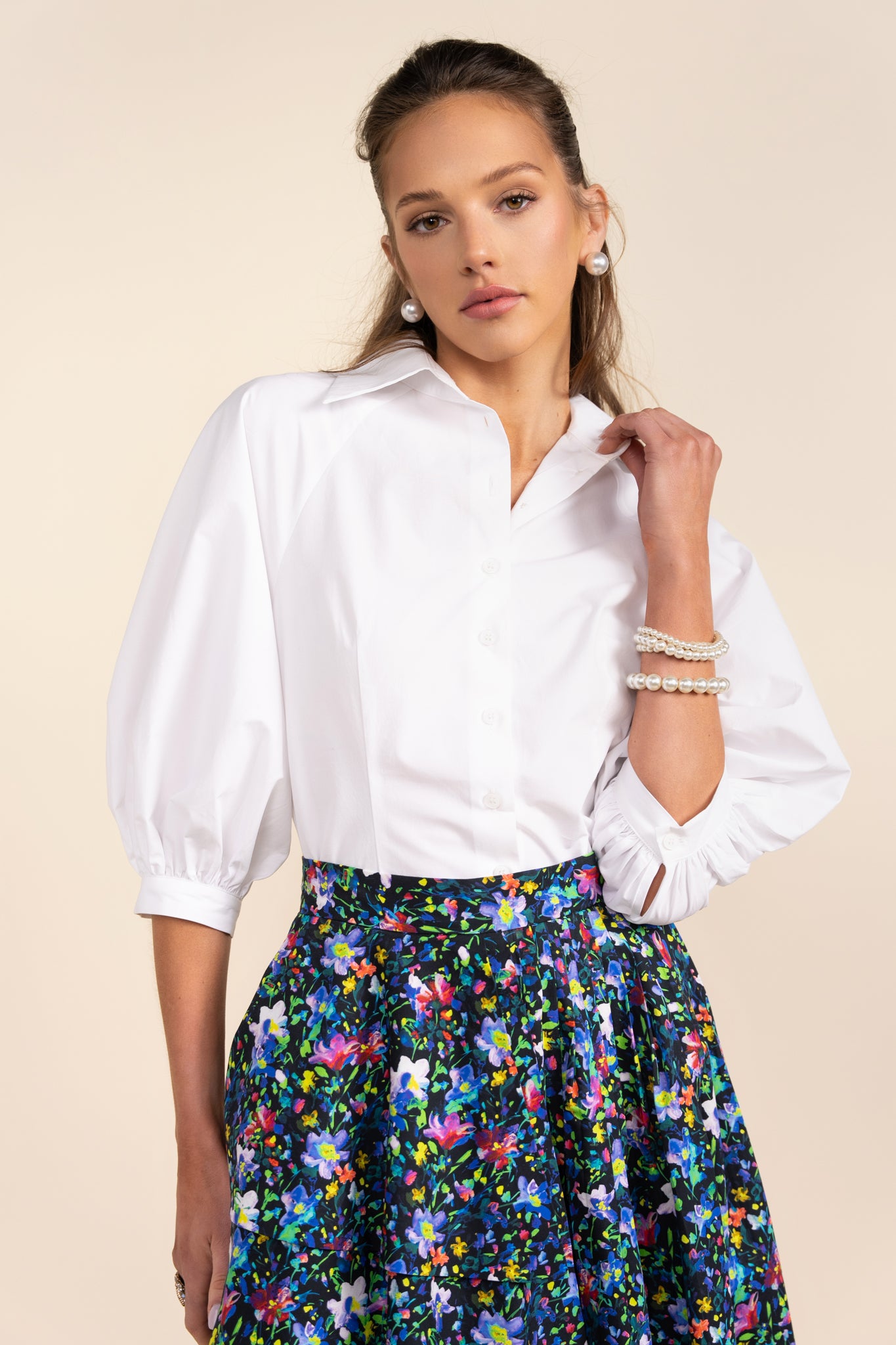 The Belmont Blouse is a sophisticated blouse with puff sleeves and a 3/4 sleeve length, perfect for any occasion. The elegant collar adds a touch of class to this stylish top. Incorporate this versatile piece into your wardrobe for an elevated and polished look.