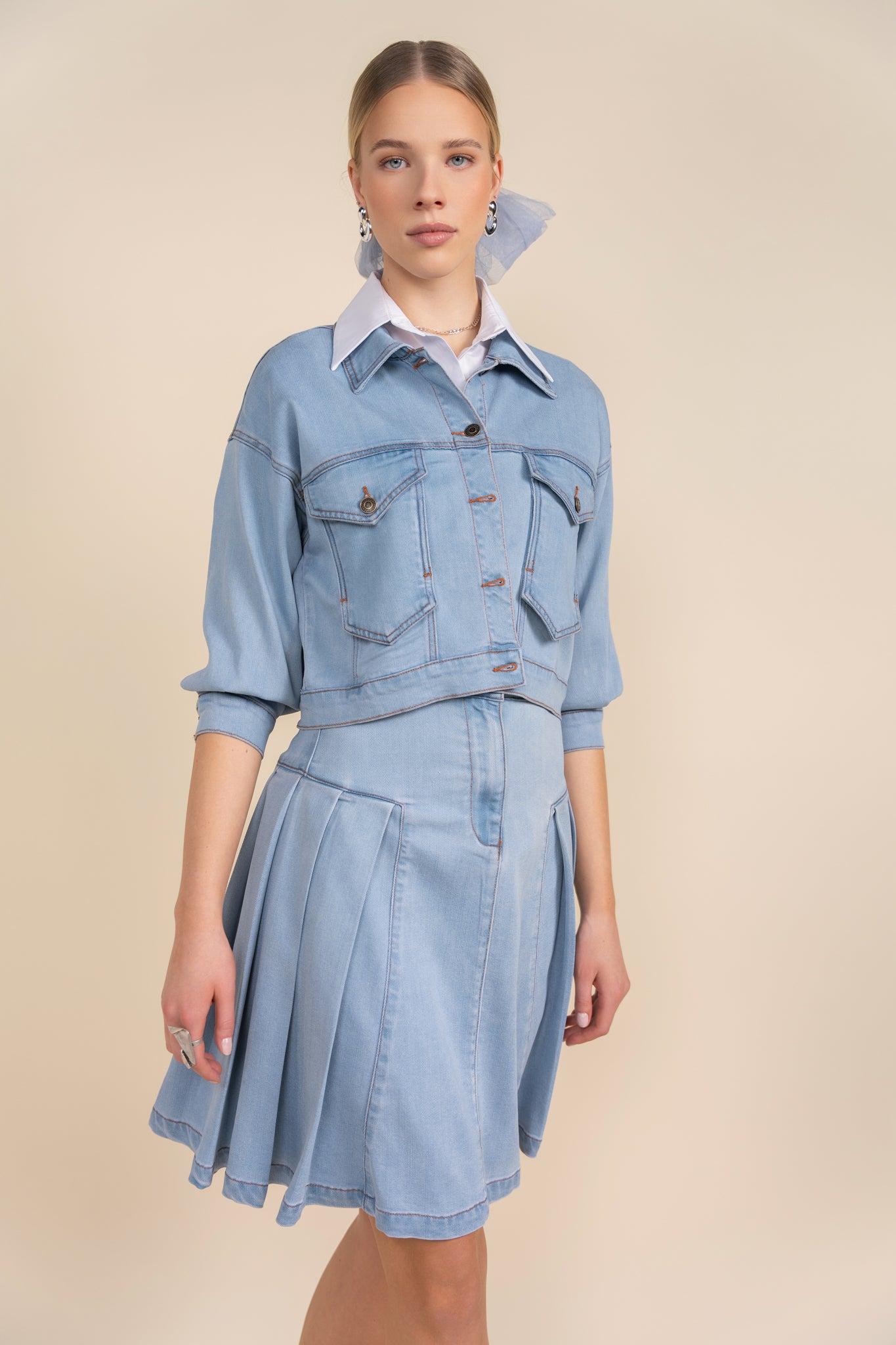 Elevate your look with the new Halsted Jacket. Made from our signature butter denim, this jacket features oversized pockets for practicality and style. Perfect for a casual yet sophisticated look.